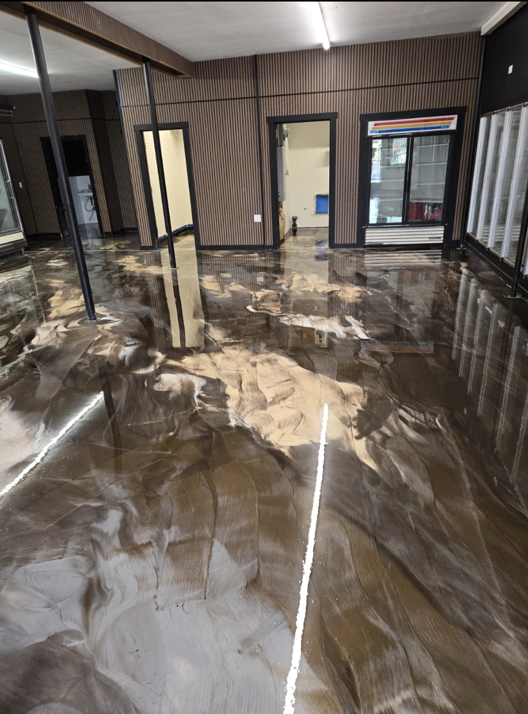 Residential & Commercial: epoxy/flake systems with diamond-grind prep, crack repair, and a UV-stable, hot-tire–resistant topcoat for a durable, clean finish.